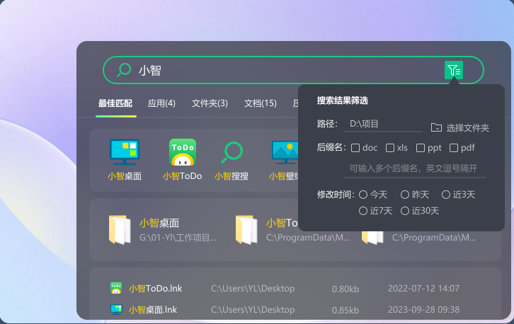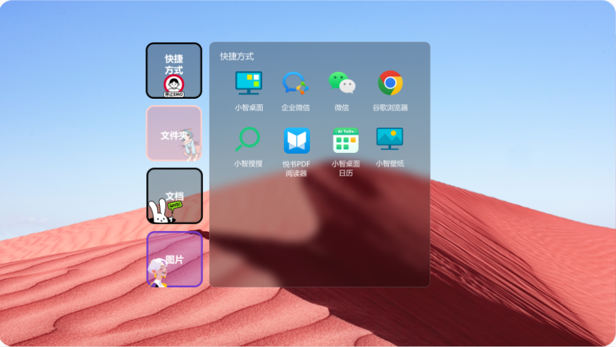 小智桌面是集“文件整理、文件搜索、待办提醒、桌面壁纸”为一体的一站式桌面管理软件。产品的人性化设计为办公族、学生党等各类用户降低了桌面使用的操作难度,为用户打造了一个纯净、高效、省心的办公和学习场景。小智桌面除了常规的桌面整理功能,也为用户提供海量壁纸,方便用户美化桌面。