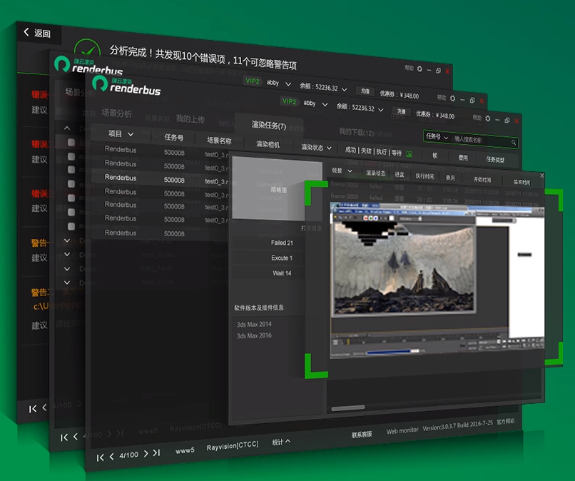 3、海量机器秒级调度:调度引擎能轻松管理上百万的渲染帧队列,除了能根据优先级进行调度之外,自动识别用户文件中用到的软件插件,并匹配到对应的节点机上。