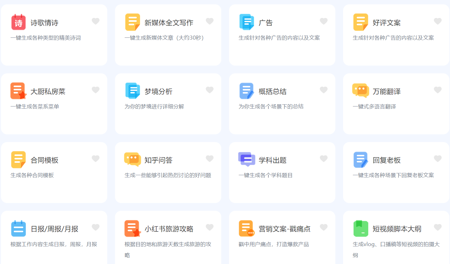 小鱼AI支持AI自动生成高质量原创内容,涵盖了AI写作、AI续写、关键词写文章、文章起标题等多种功能。小鱼AI不仅可以满足用户在AI影视解说、AI知乎回答、短视频脚本、办公文档自动写作、宣传文案写作、智能翻译、AI写小说、小红书笔记标题、种草文案、亚马逊产品简介、跨境电商文案SEO优化、产品SEO优化、现代诗歌等情景的需求,还能让写作变得更加简单,让思想得到更 充分的表达。