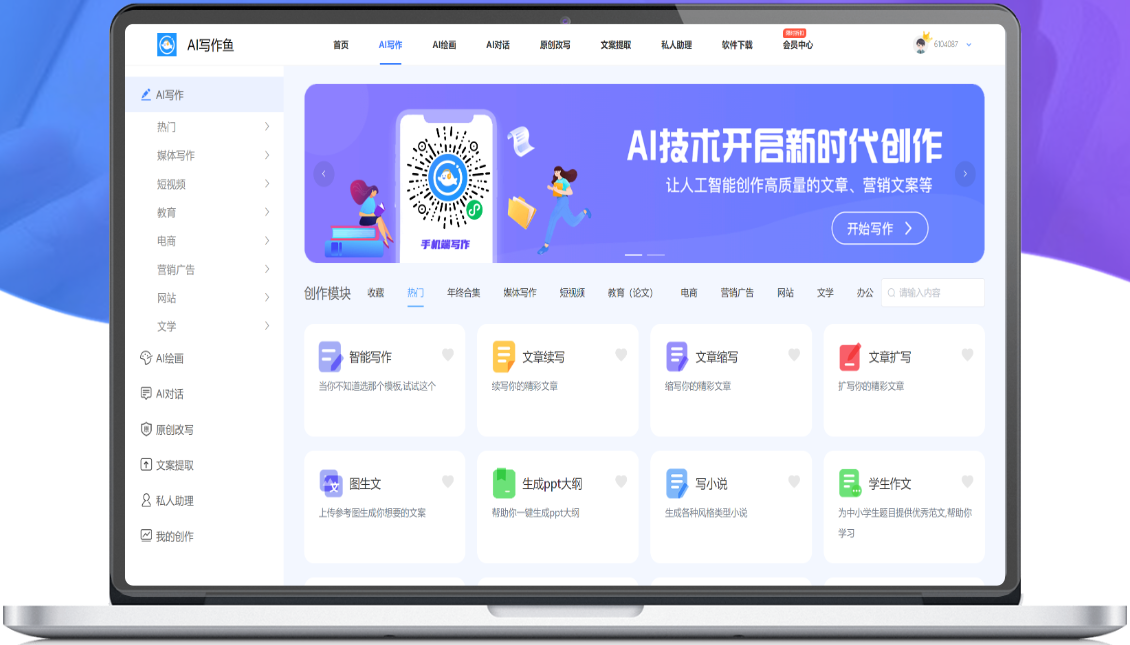 AI写作鱼是一款在线智能的AI写作平台,AI自动生成高质量原创内容。支持AI写作、AI续写、关键词文章、文章起标题。覆盖AI影视解说,AI知乎回答,短视频脚本,办公文档自动写作,宣传文案写作,智能翻译,AI写小说,小红书笔记标题,种草文案,亚马逊产品简介,跨境电商文案SEO优化,产品SEO优化,现代诗歌等情景。让写作更简单,让思想充分表达!它能够根据学生的需求和水平,提供个性化的写作指导和建议,帮助学生提高写作能力。
