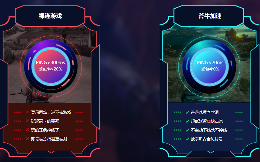 1、0丢包 极致游戏体验。