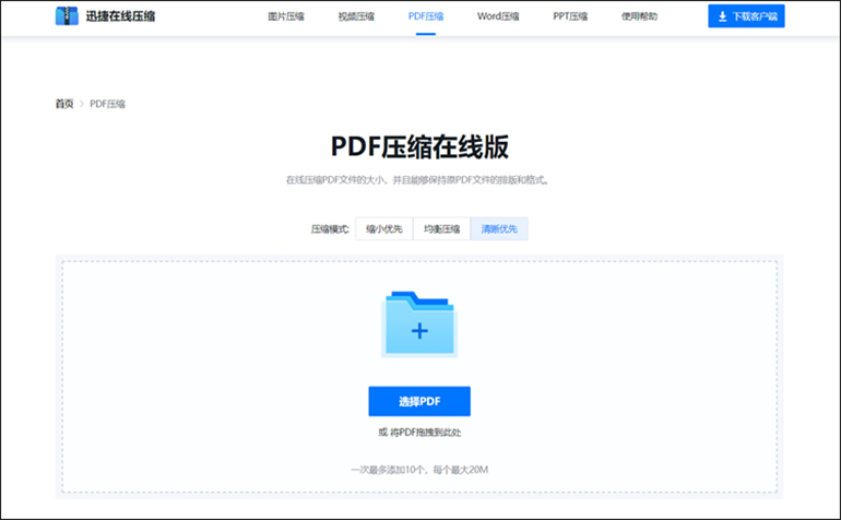 迅捷压缩在线软件提供了多种不同的压缩方式,包括图片压缩、视频压缩、PDF压缩等。在选择压缩方式时,我们需要根据自己需要压缩的PDF文件类型和需求来选择合适的压缩方式。