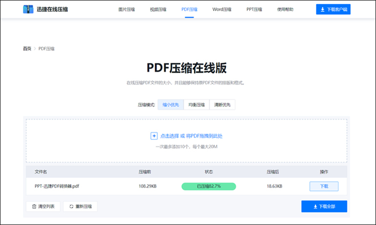 迅捷压缩在线软件将PDF文件压缩到想要大小的步骤