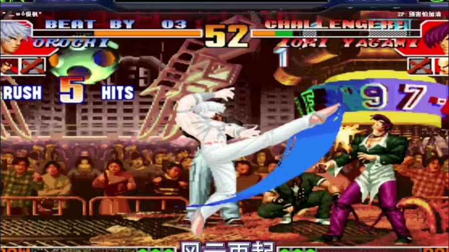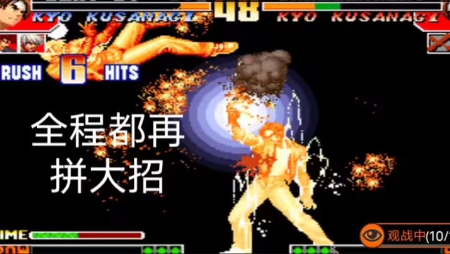 拳皇97风云再起是一款非常经典的街机格斗游戏,情怀满满,人物动作等等做的比较酷炫,由于是关于大蛇一族的最后一部,其情节也受到相当程度的FANS的关心。沿用了系列队伍VS队伍的对战方式,对战目标是使其中一方队伍的所有角色体力值归零,或是在时间结束前持续保持较高的体力值以获得胜利。每局对战结束后将以获胜队伍的剩余生命值、剩余时间、剩余人物进行分数结算,并在游戏通关或结束后计入游戏排行榜。