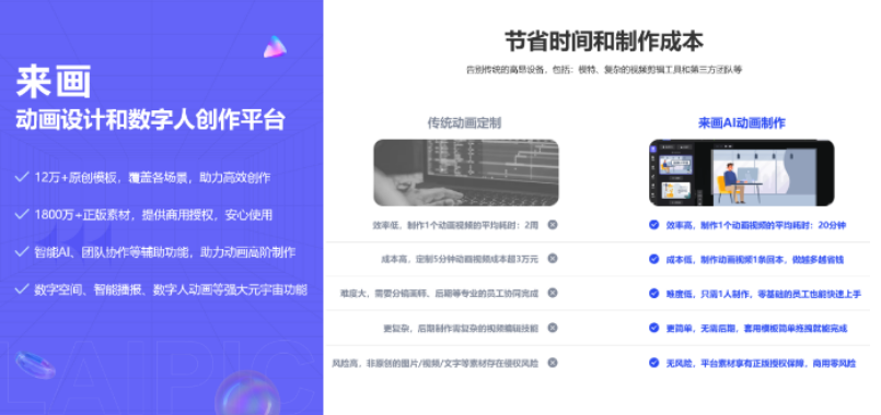 来画,像做PPT一样做动画,适用于MG动画、微课动画、科普动画、宣传动画、医学动画、公益动画等多种场景的动画制作软件,无需专业动画制作知识,也能快速制作动画视频。