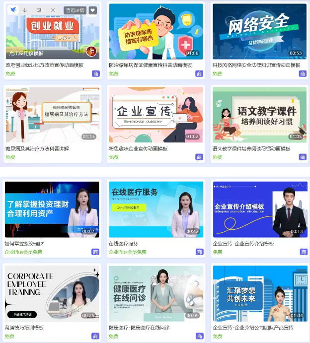 适用于企业宣传、产品介绍、微课制作、安全教育、企业培训、公益宣传、医疗科普、MG动画、反诈宣传、金融科普、相册视频、入职指导、节日祝福等多种场景使用的动画模板。支持按需求定制专属模板。
