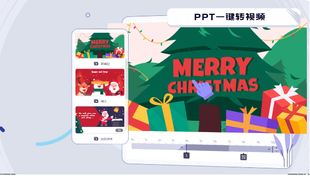 PPT一键导入,自动解析成素材,微调动画与转场效果,即可导出为生动的动画视频。此外,还支持PPT在线演示,将做好的动画进行更生动的在线演示。