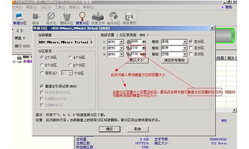 8、修改分区数目的容量大小。并点击其它分区容量空白处,自动调整全部容量;