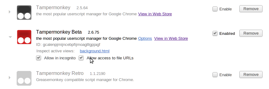 如果您对 Tampermonkey 不满意(这不大可能发生,但是谁知道呢;),您可以在 Chrome 浏览器的插件页面移除它。