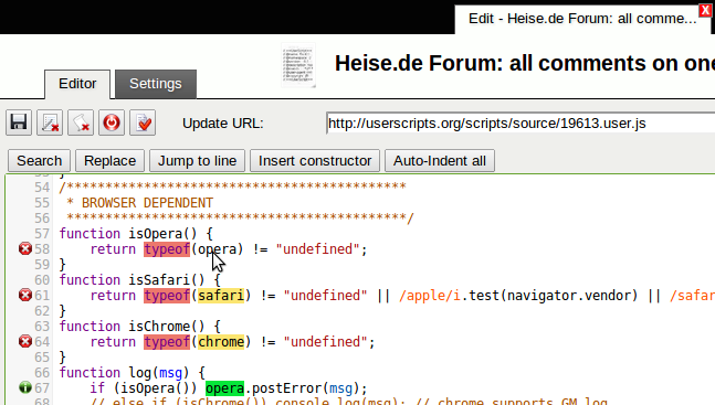 您的脚本无法运行?Tampermonkey 的语法检查或许可以帮您找到问题.