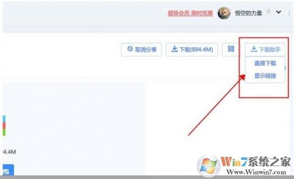 4、安装完脚本后在百度网盘下载页面,会看到右边多了一个下载助手的按钮,点开后有直接下载和显示链接,你想用浏览器直接下载还是用迅雷或者qq旋风下载就随你便了。