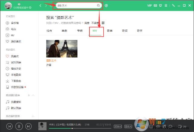 2、点击【MV】,点击你要观看的MV,进入播放页面,