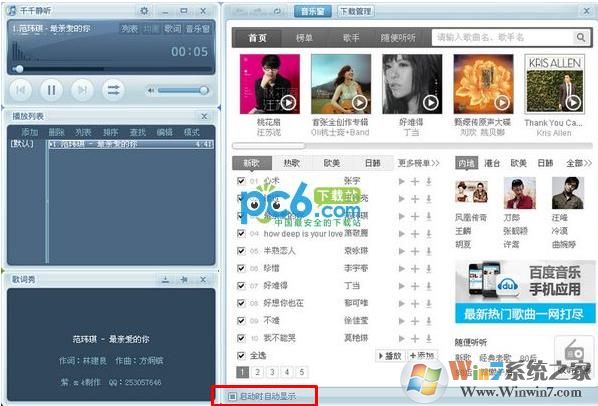 3、如果不想显示在线音乐,取消勾选右侧窗口“启动时自动显示”选项,重新打开就没有了
