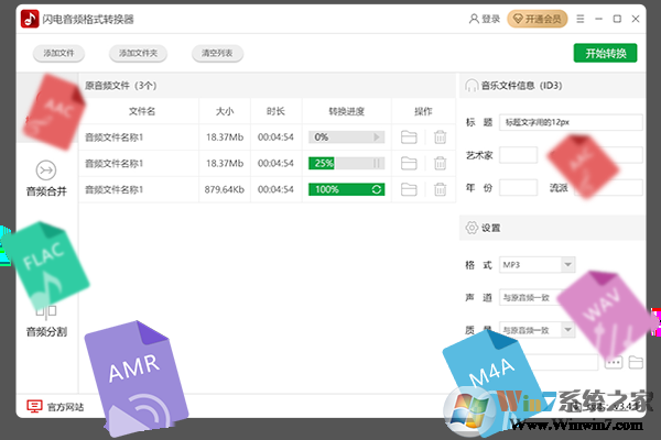 支持多种音频格式转换,如wav、ogg、flac、amr、m4a等格式的互相转换;