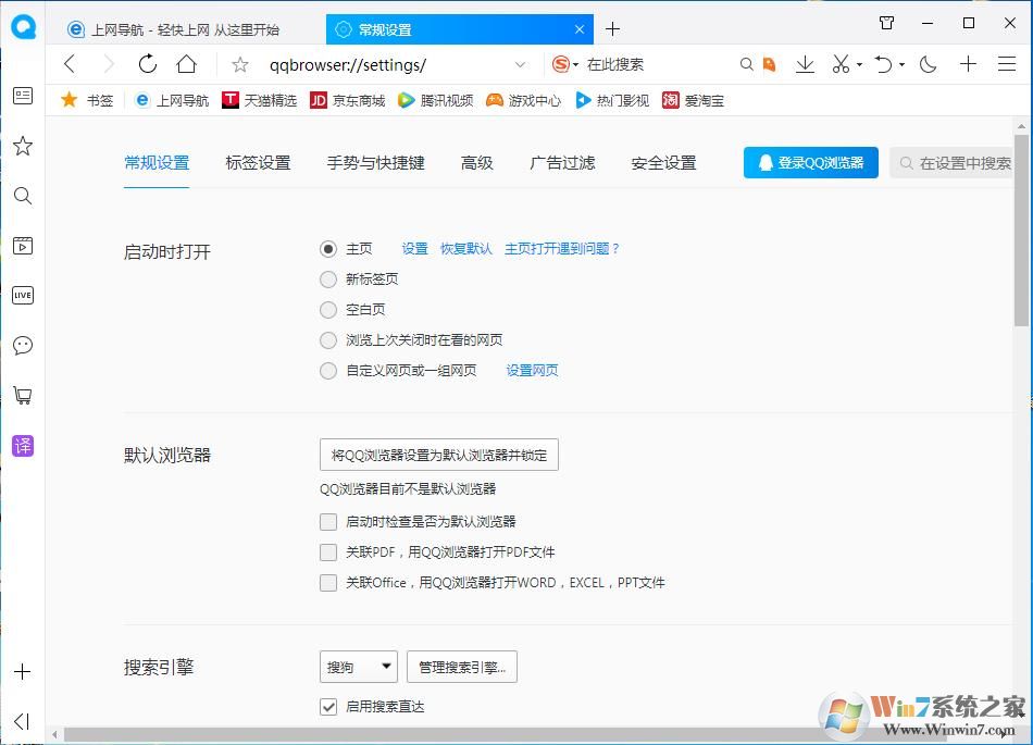 (1)打开「菜单」-「设置 」-「常规设置」-「启动时打开」,当前选项修改为「主页」;点击「设置」,在弹出的页面中,选择「上网导航」即可恢复默认主页。你也可以手动设置想要打开的主页;