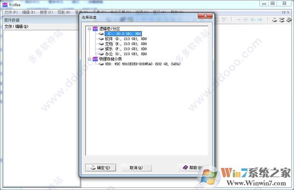 2、选择“打开磁盘”,出现“编辑磁盘”对话框,在这个对话框里,我们可以选择对单个分区打开,也可以对整个硬盘打开