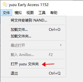 3、关闭弹窗后,点击模拟器的左上角的文件,点击“打开yuzu文件夹”。