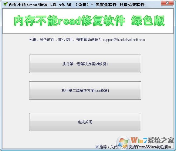 内存不能为read修复工具,是黑鲨鱼软件出品的免费软件。用来修复Windows系统出现内存错误,如:“0XXXXXXXXX指令引用的0x00000000 内存,该内存不能read”,“0XXXXXXXXX指令引用的0x00000000 内存。本软件绿色无毒,请放心使用。