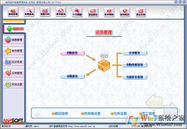 进行商品采购入库、采购退货、进/退单据和当前库存查询、与供货商的往来帐务