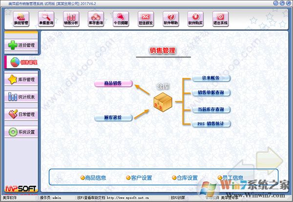 进行商品业务、顾客退货、销/退单据和当前库存查询、POS 业务统计、与客户的往来帐务