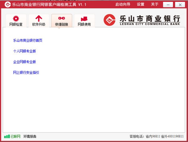 乐山市商业银行网上银行助手是乐山市商业银行网银安全中心开发的一种网银安全工具。该软件可以检测你的电脑环境,一键修复驱动;还可以自动配置网银信任网站,安装网银控制等相关问题。确保您的网银交易更加安全放心。