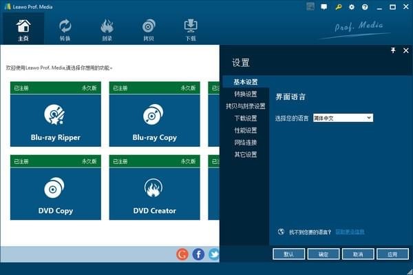 作为全方位媒体转换器套件,Leawo Prof. Media 可确保您的电影之夜拥有高质量和流畅的电影观看体验。包括高清视频转换器,免费音频转换器,DVD拷贝,蓝光制作,DVD复制,DVD制作,照片幻灯片制作,照片幻灯片刻录机和免费You Tube下载,这个媒体转换器套件可以轻松解决任何格式不兼容问题。作为高清视频转换器,该媒体文件转换器套件可以在MP4,AVI,MOV,FLV,MKV,WMV,RM,MPEG等之间转换普通和高清(高达1080P)视频。作为专业媒体转换器套件,它可以充当DVD翻录和备份软件,将DVD转换为多种格式的视频/音频,并将DVD电影复制到计算机或空白光盘进行备份。此外,它可以很容易地作为蓝光/ DVD制作器将视频刻录到蓝光/ DVD光盘,文件夹或iso文件。从You Tube和其他视频分享网站下载在线视频是小菜一碟。借助内置的照片幻灯片制作器和刻录机,Leawo Prof. Media 可帮助您轻松创建照片幻灯片,并将照片幻灯片刻录到Blu-ray / DVD,并可编辑幻灯片视频和音频。