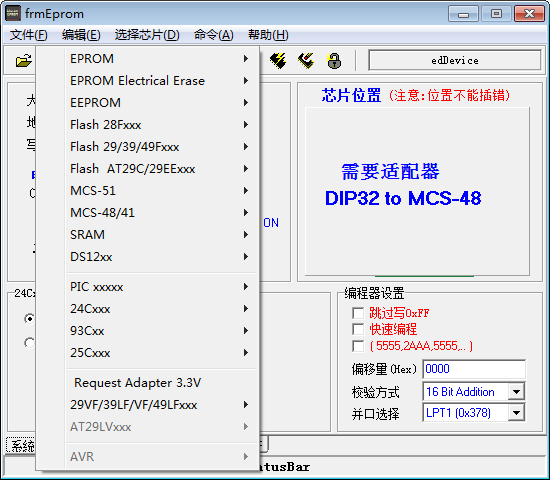 一、下载打开软件,选择需要编程的EPROM芯片。