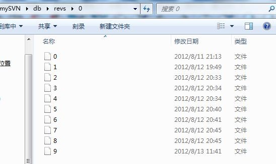 2.现在在本地新建一个文件夹,用来做SVN库。这里我在D盘新建了一个名为mySVN的文件夹,然后右键选择tortoiseSVN->Create Repository here,这样SVN库就已经创建好了可以看到该文件夹中增加了一下目录:
