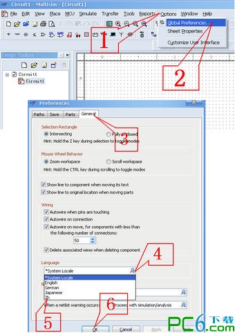 2、再运行Multisim10 选择菜单Options\Gobal Preferences;