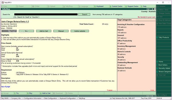 Tally ERP 9是一款高性能的业务管理软件,软件拥有强大的连接功能使您可以随时随地随时与您的员工,CA和其他专业人员共享信息。软件具有高性能业务管理所需的所有功能。