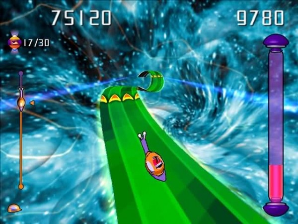 用鼠标控制左右方向,鼠标按左键蜗牛会发射大炮。碰到仙人掌会伤血,一定的数量会使速度变快(一会儿会恢复),爱心可使伤减少游戏模式分为“教学”、“练习”、“时速”和“挑战”四种。“教学”一种轨道,“练习”随着关数难度增加,“时速”选择“练习”关数,“挑战”自己组合出现过的轨道。
