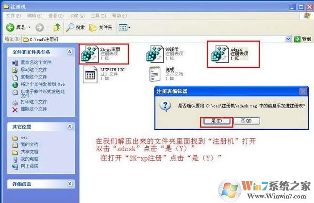 2,打开破解文件夹里的2k-xp注册.reg和adesk.reg文件,进行注册。