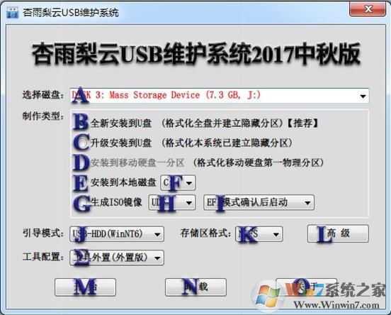 C、升级安装到U盘,格式化由本工具创建的隐藏分区,仅限首次安装后[已经向U盘安装过本系统后]再次安装时使用。其中J项的引导模式部分可互相升级,UD和非UD模式不可互转。若使用该项安装后无法启动,往往是分区损坏、模式不正确、空间不足等原因引起,请选择B项进行全新安装。