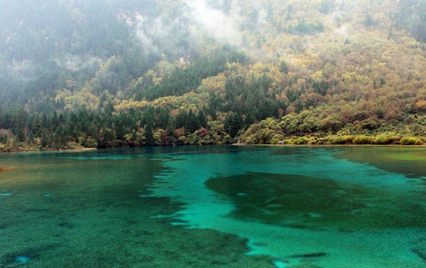 九寨沟位于四川省西北部岷山山脉南段,是长江水系嘉陵江源头的一条支沟,因有九个藏族村寨而得名.群山峥嵘、雪峰高耸,在长达数十公里的‘Y'字型沟谷里分布着大小湖泊114个,湖泊间有17个瀑布群.11段激流、5处钙化滩流形成了中国唯一、世界罕见的以高山湖泊群、钙化滩流为主体的自然景观...........