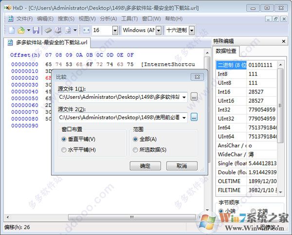 2、点击分析菜单--比较,可以对两个文件进行比较。