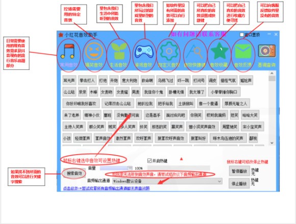 小红花音效助手是一款有趣的音效软件,软件内置上千款音效,支持声卡通道设置,可而且以自定义添加音效。小红花音效助手可以实时搜索音效,还能支持云端备份!