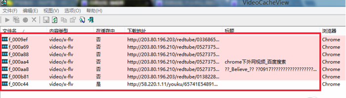 1、打开VideoCacheView,进入主界面可以看见显示出了目前寻找到的视频缓存。