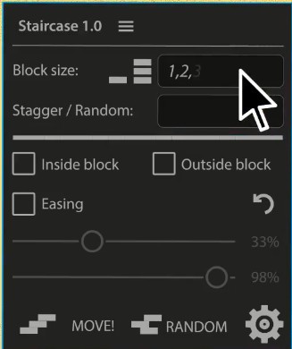 staircase是一款适用于AE软件中的脚本插件,主要是帮助用户多图层快速排列,支持设置交错或按照顺序排列以及随机排列等操作,帮助你节省不少编辑时间!