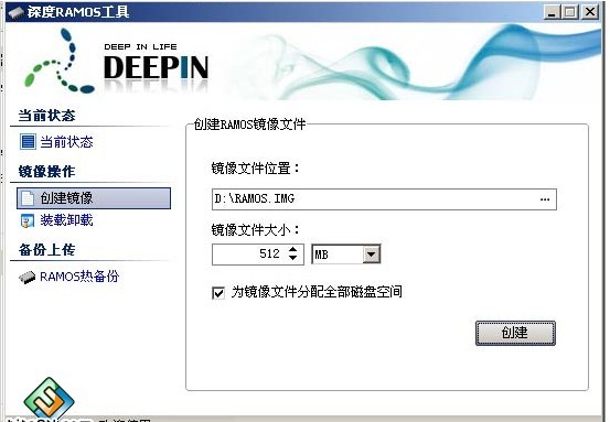 这个时候,如果是新创的盘,还是空白的,需要把本机的操作系统全盘拷到镜像中,才能以镜像来启动;这个过程我们称之为“备份上传”---RAMOS热备份;填写装载的盘符。格式化时,可以选“压缩”