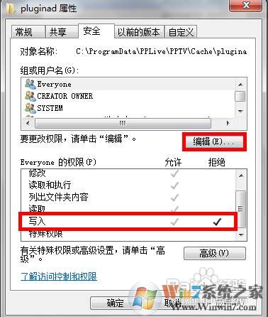 右击属性,选择安全,点击编辑,将everyone的权限中写入改为拒绝。