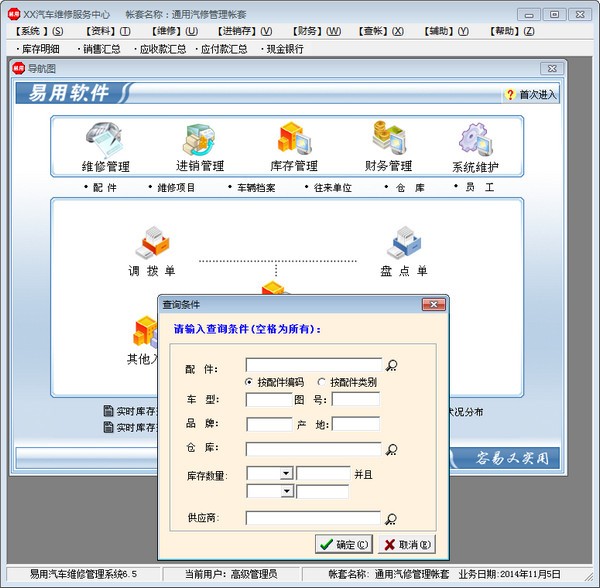 1、集汽车配件销售、汽车维修管理、汽车美容服务、内部消耗品领料、应收应付往来账务、营业员销售提成、维修班组提成管理于一身。