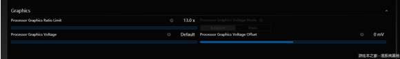 这里是核心显卡的超频页面,核心显卡讲的就是低功耗,故不做讨论,基本与CPU同理,13x为最大倍频,Voltage为电压