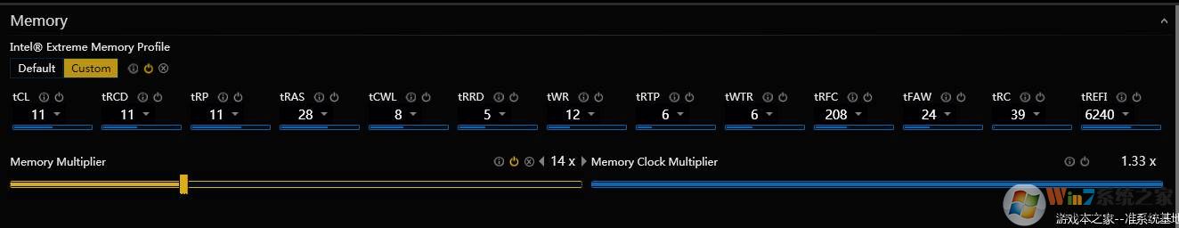 Memory Multiplier为内存倍频,右边的就是内存外频,内存外频是可以调整的,你可以自由组合外频倍频,相乘即为频率