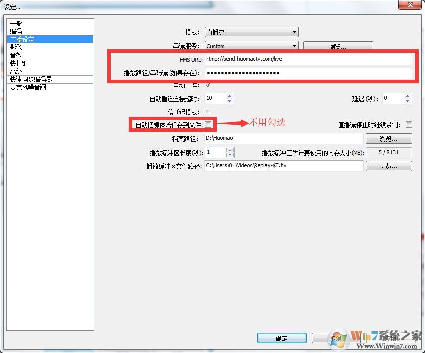 (2)直播模式:直播流(去直播网站把FMS URL 和串流码复制到这来)