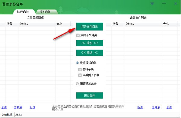 百思表格合并软件是一款可以快速把EXCEL表格进行合并的工具,支持批量处理!支持按行、列合并!还特有兼容模式和快速模式提供给用户使用!如果你需要合并表格,那么百思表格合并软件是一款不可多得的好工具。
