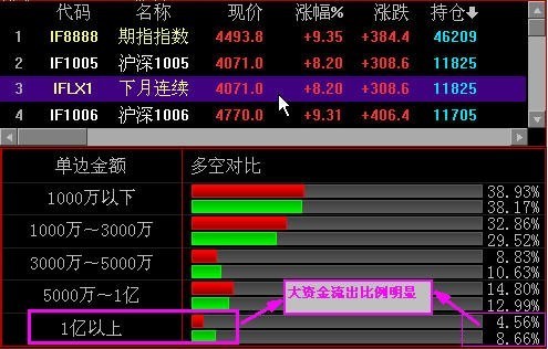 各合约分时图实时大单资金分笔进出统计,并实时监控大单进出趋势,机构动向尽在掌握之中。