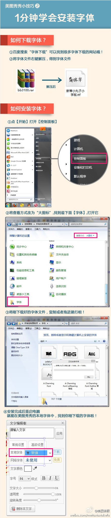 Q:怎么安装字体/如何在美图秀秀上导入字体呢?