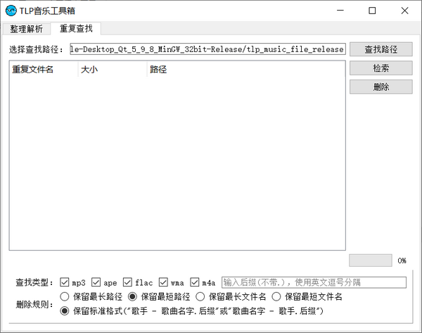 TLP音乐工具是winwin7下载小编给大家介绍的非常不错的音乐管理软件,使用这款TLP音乐工具箱我们能够用快速检索电脑中的音乐,并且能够随意更改音乐的后缀并分包管理,还支持监测重复音频,主要功能还是便于音乐爱好者更好的进行音乐管理。