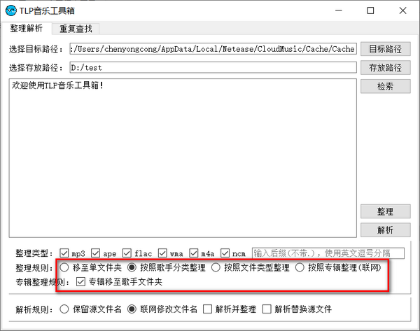 1.全新升级的依照专辑梳理作用,可以全自动连接网络获得专辑姓名,在当地建立专辑文件夹名称,全自动把该音乐挪动至专辑文件夹名称。