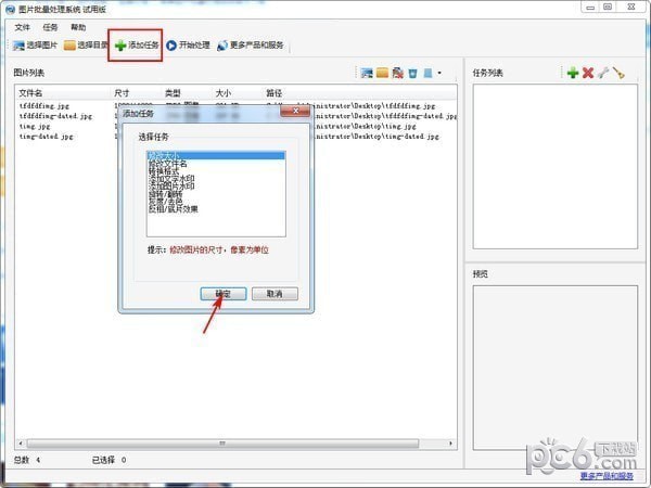 2、点击“添加任务”添加处理任务,可支持多任务,任务参数属性可以编辑修改,也可取消或勾选指定任务